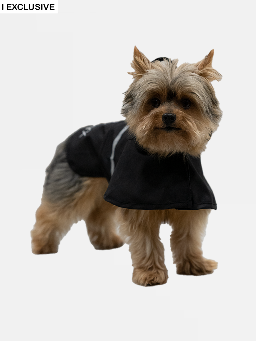 Our CEO Dracula is wearing XS He is a Yorkie Pom and he weighs 5lbs.